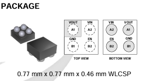 封裝尺寸 | 0.77 mm x 0.77 mm x 0.46 mm (WLCSP) | 0.78 mm x 0.78 mm x 0.5 mm (WCSP) |